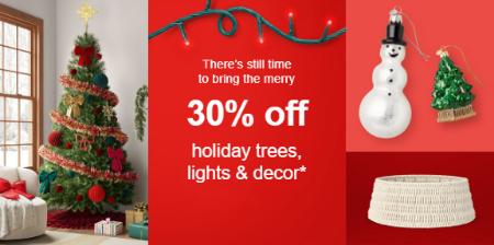 Limited time only! Shop in store and save 30% off on holiday trees, lights & decor.