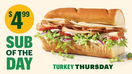 Grab a different delicious 6" sub every day of the week for just $4.99.